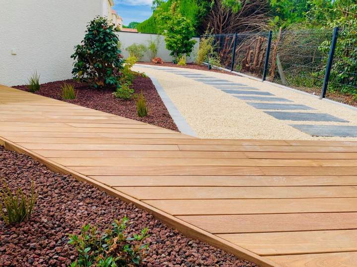 Avec La Belle Saison, offrez à vos extérieurs une terrasse en bois qui allie chaleur, naturel et convivialité. Que vous choisissiez du bois exotique, du pin ou du bois composite, nous sélectionnons des matériaux de haute qualité, parfaitement adaptés à vos besoins et à l’environnement de votre jardin.